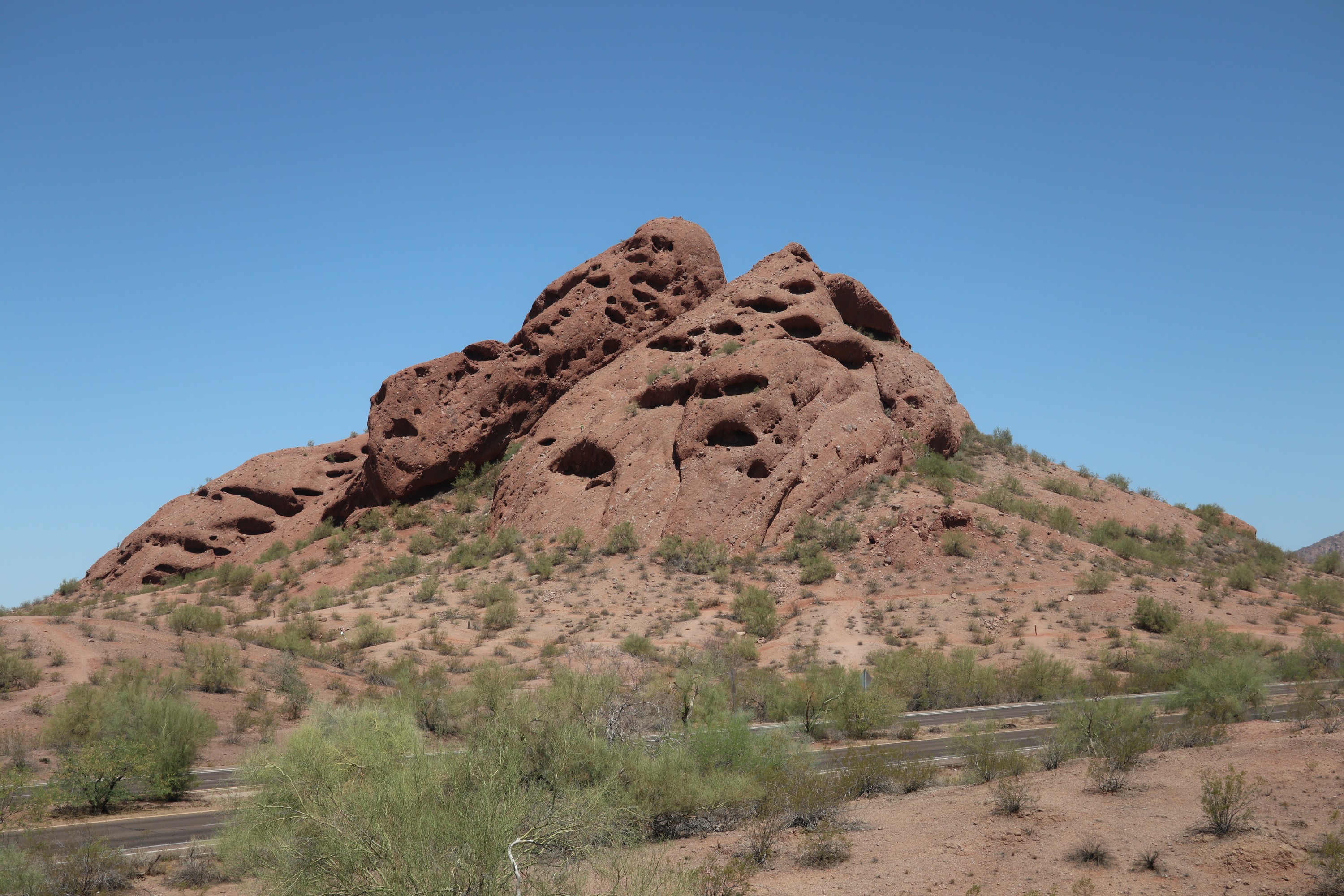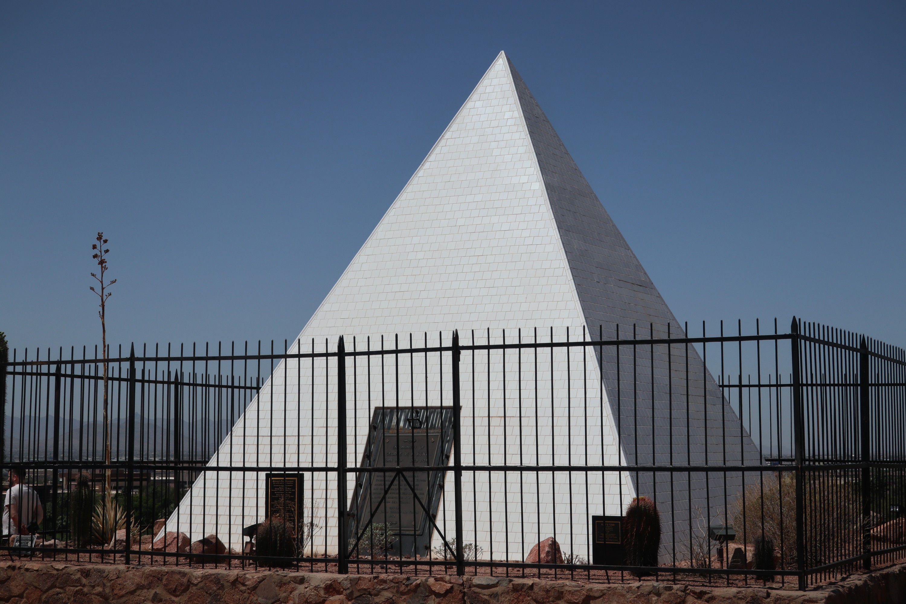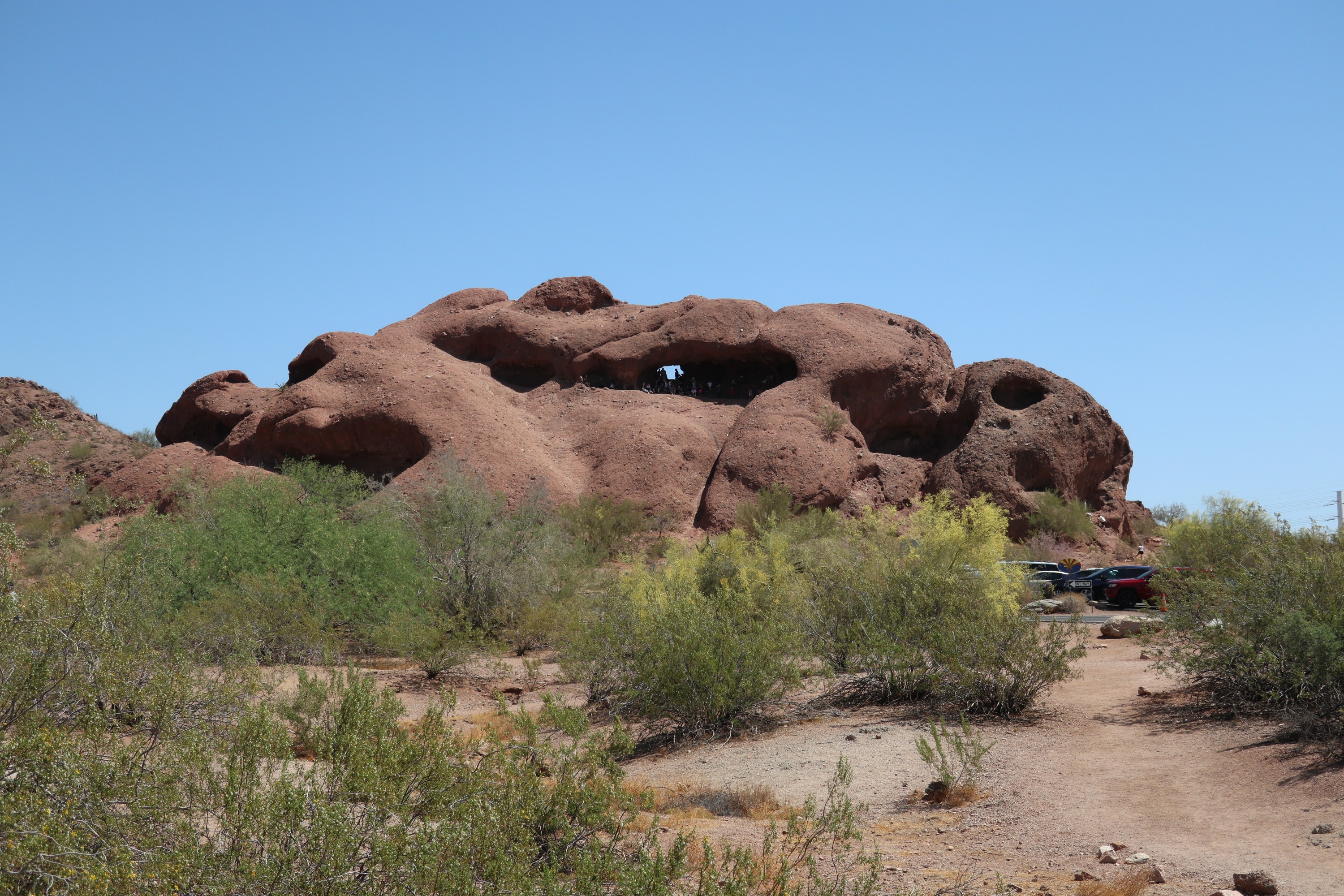 ここには、奇岩的な観光名所である"Hole in the Rock"があります。登ったりもできるようですが、気力をBotanical Gardenなどで使い果たしてしまったので、そこまではやりませんでした。まあ、こういうのは、自分が行ってしまうとよくわからないものですしね。 そのほか、謎のピラミッドのような形の"Governor Hunt Tomb"もあったりします。これは、Wikipediaの記述によれば、最初のアリゾナ州知事のHunt夫妻のお墓のようです。