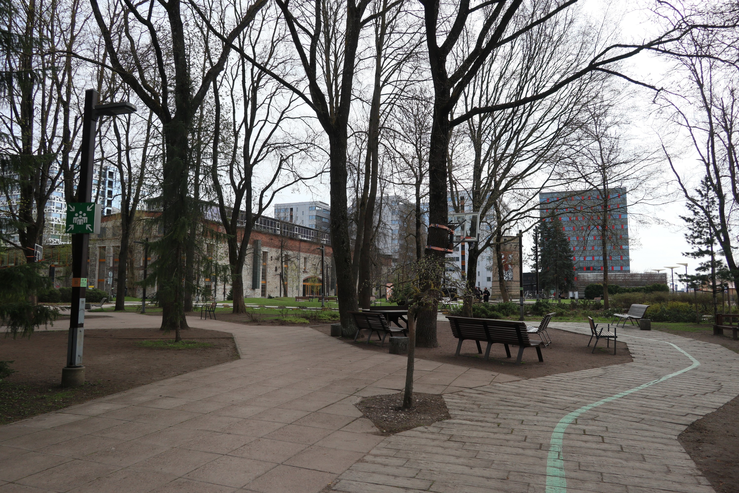 以前はTallinn空港までトラムが来ていたのですが、再開発工事か何かでいったん休止になっています。なので、市街地まではバスなどを使うことになりますが、コンパクトな都市なので別にこれは歩いてもいいのではないか?ということで、歩いてホテルまで向かいました。歩いて行くと、風景を見ることができていいですね。もちろん観光地ではない普通の風景なのですが、それでもヨーロッパらしさにあふれていてすごく良かったです。