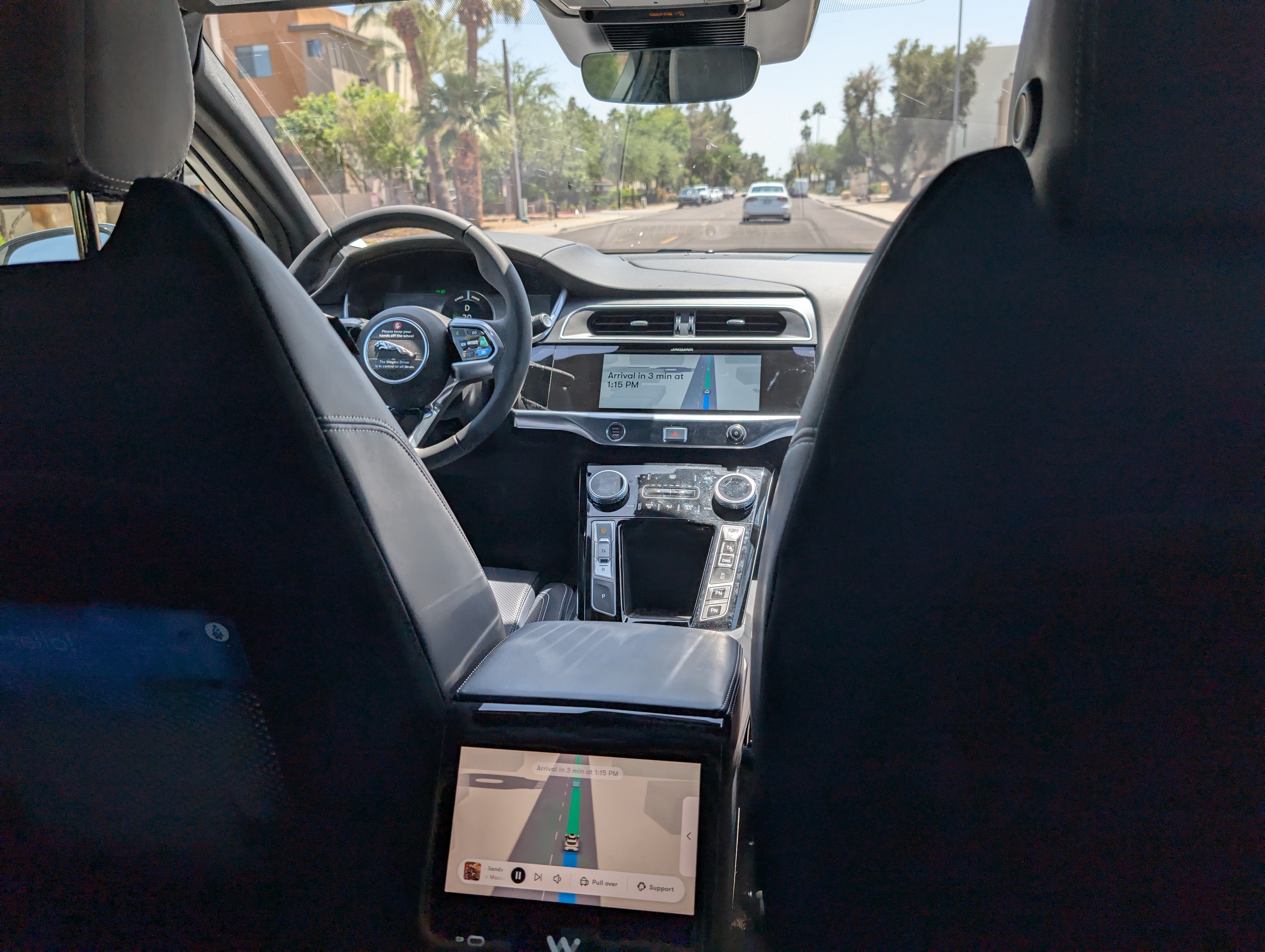 まあそれはともかく、2回目のWaymoです。ほとんど車もいない時間帯なので、きわめてスムーズにいきました。 右折から合流するところ(アメリカでよくある右折のために交差点をショートカットする道があるところ)でほとんど減速しなかったのは少しドキドキしましたが。(確かに合流先に車はまったくいなかったし来る気配もなかったので正しかったのですが)