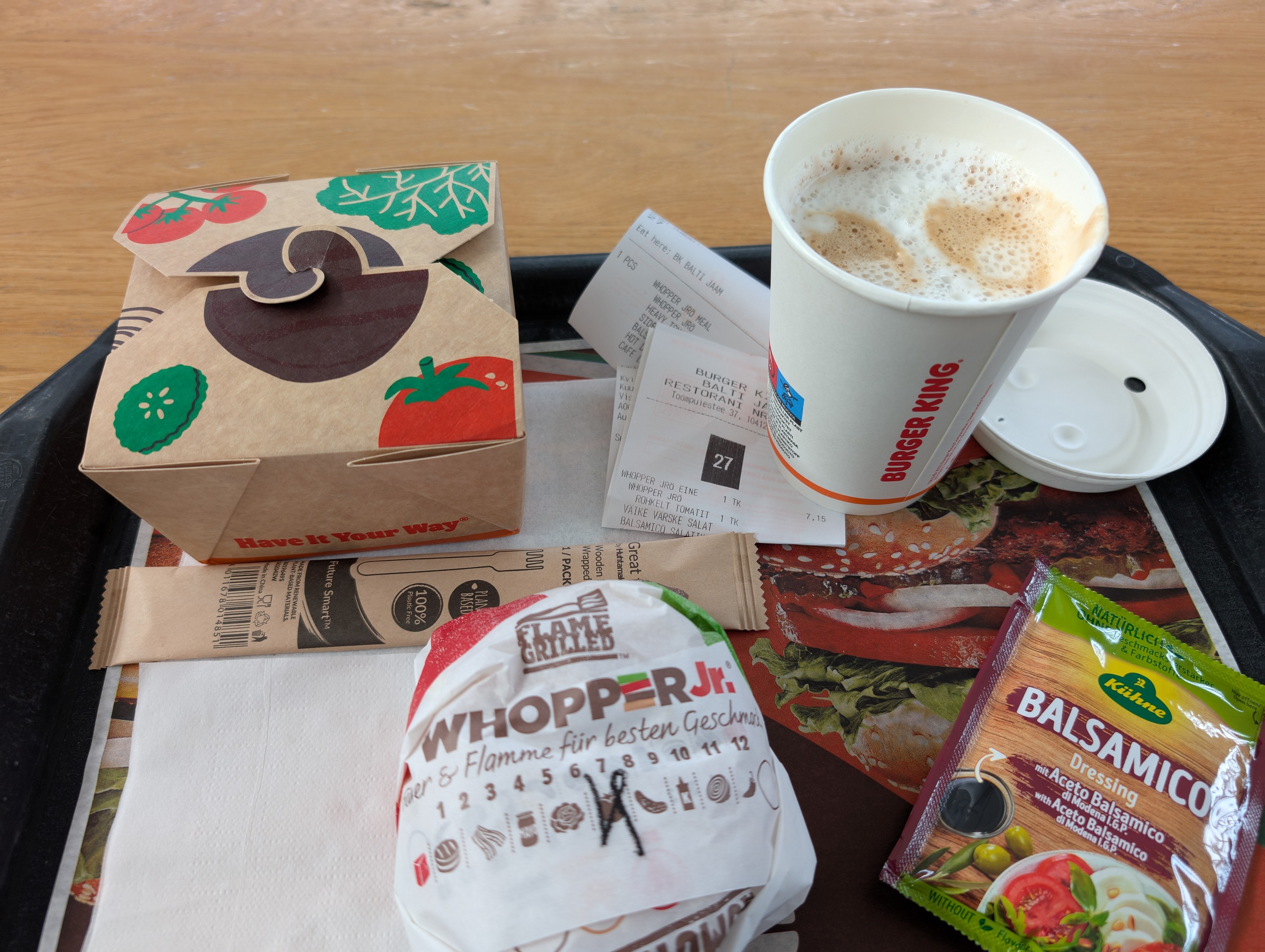 フェリーの中はレストランやカフェなどが充実しており、2時間にはちょっともったいないくらいの設備です。当然のごとく、バーガーキングも船内にあります。