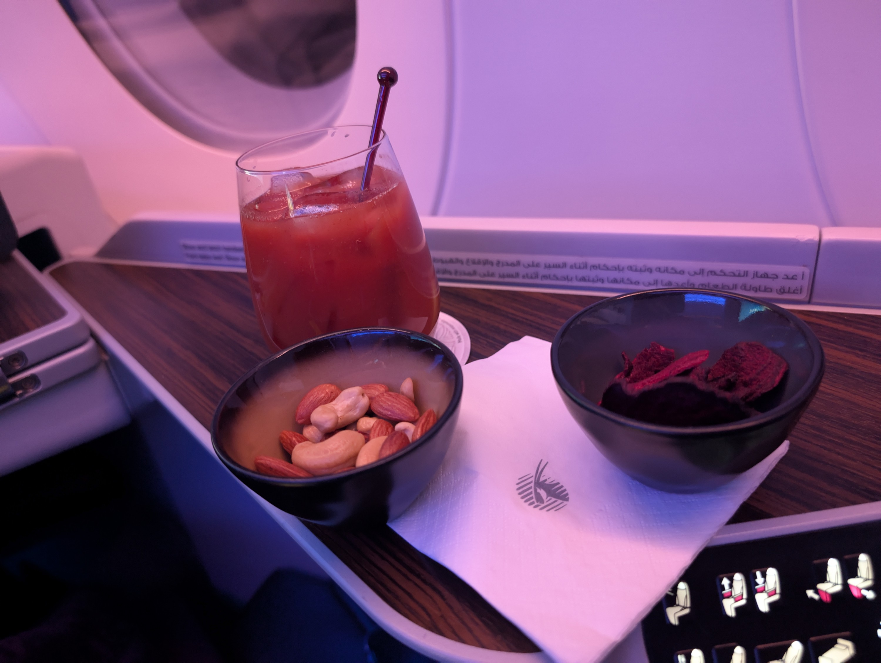 やっぱり、ラウンジも本当にビジネスクラス用のラウンジがある(ステータスだけでは使えない)だけ、Qatarはこういった座席クラスによってあからさまに待遇が違う感じがありますね・・・。座席はA320で4時間半ということで、2-2の豪華な普通の座席という感じでした。フルフラットにはならなかったと思います。